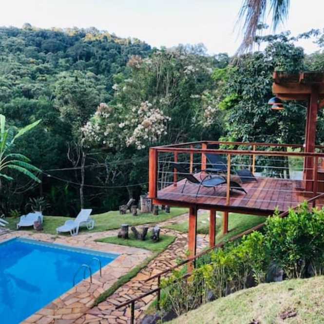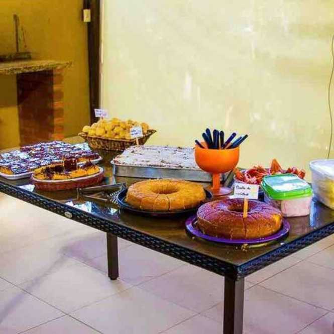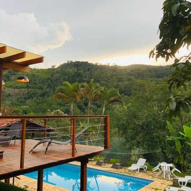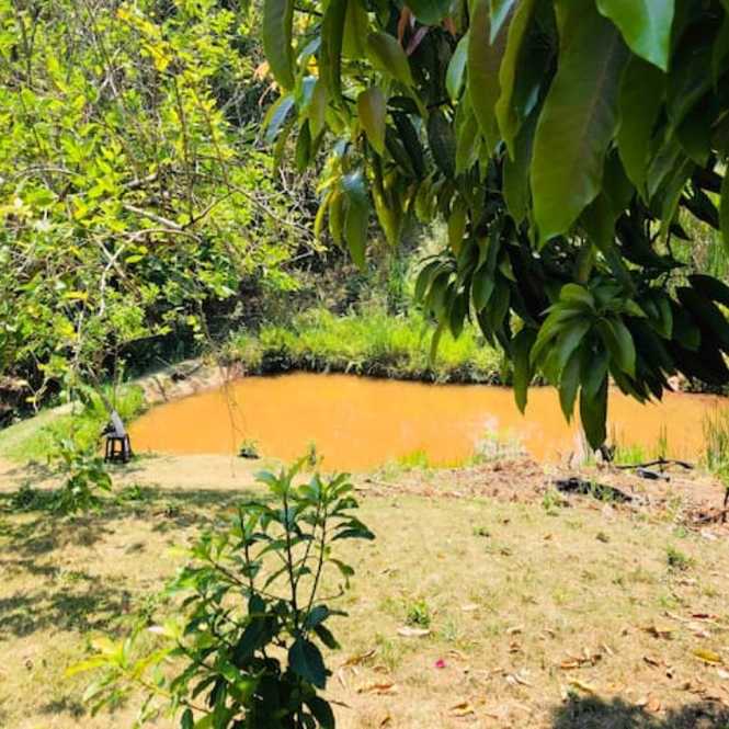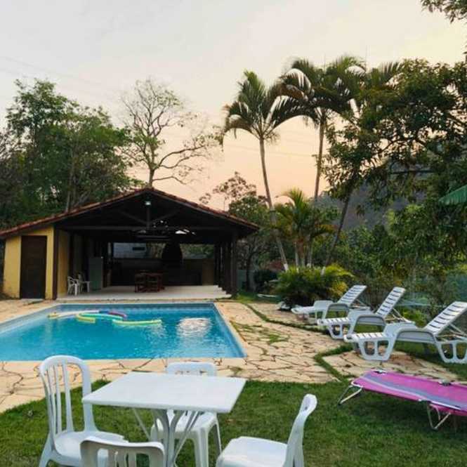 - Lazer - Piscina grande de 9 x 4,5 mts; - Fogão a lenha perto da piscina; - Forno de pizza; - Churrasqueira; - Salão de festas, com iluminação profissional; - Campo futebol; - Pomar; - Sauna; - Um banheiro; - Um lavabo