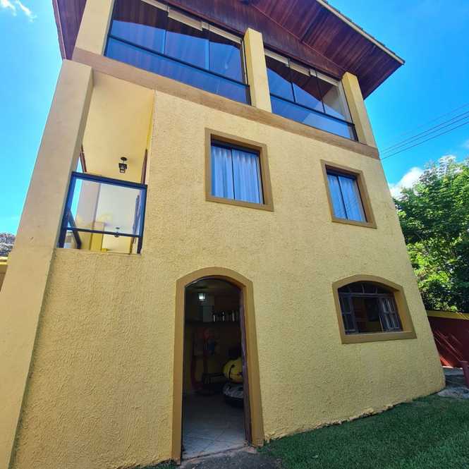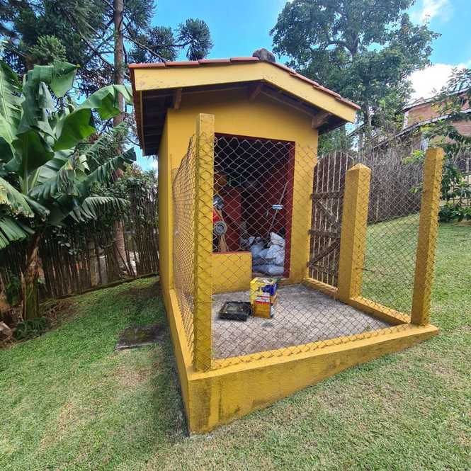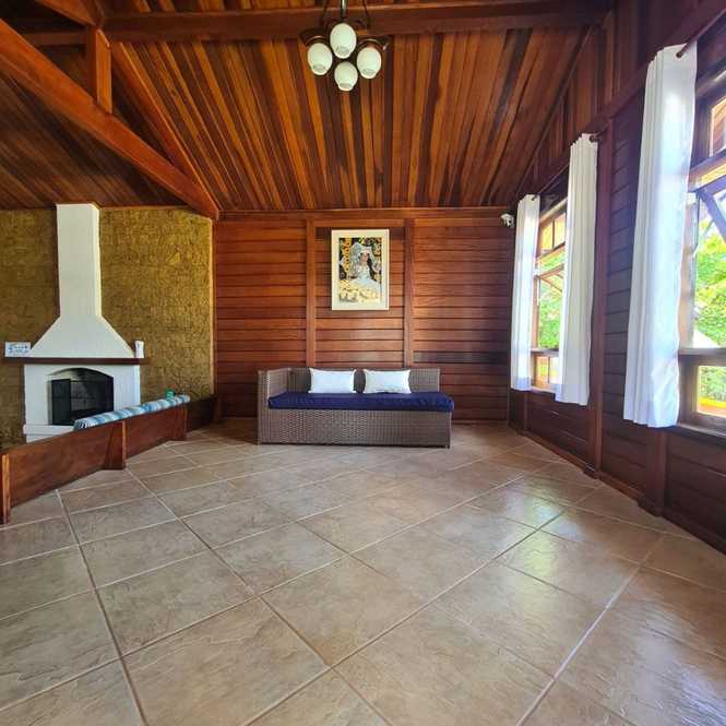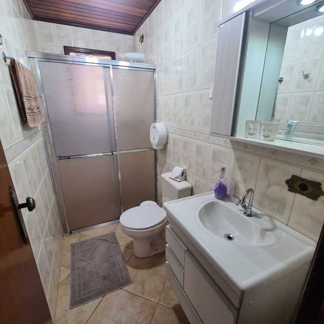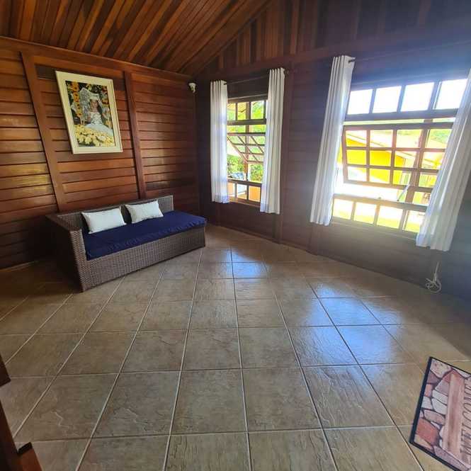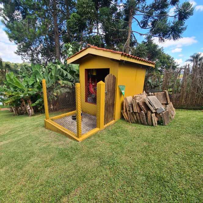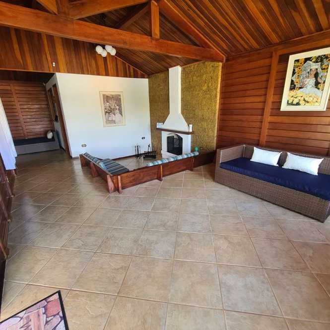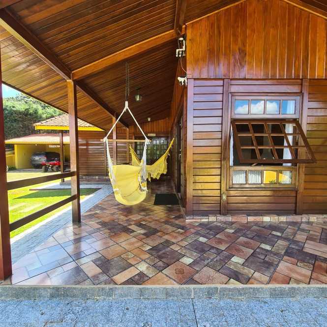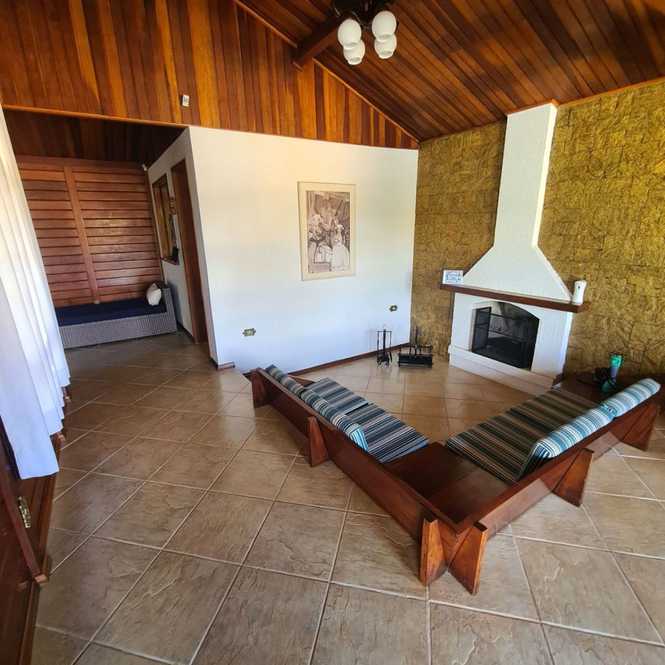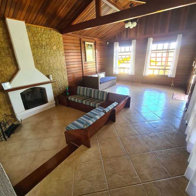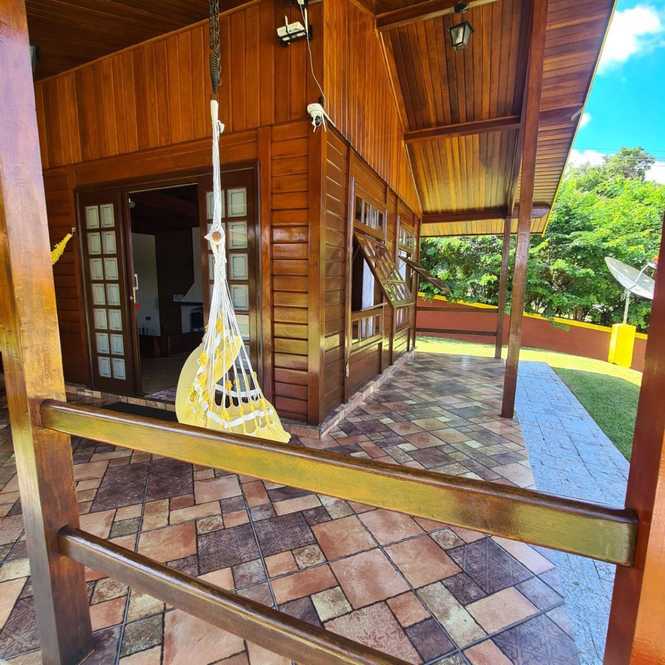 Uma belíssima e aconchegante casa de madeira com lareira, 3 dormitórios sendo 1 suíte, garagem para 4 carros coberta.