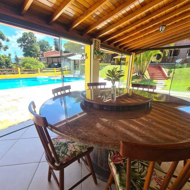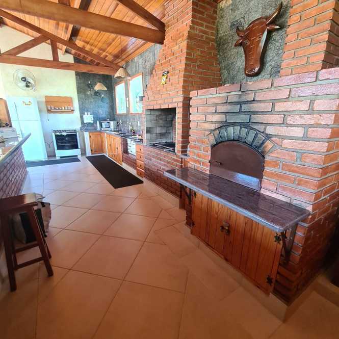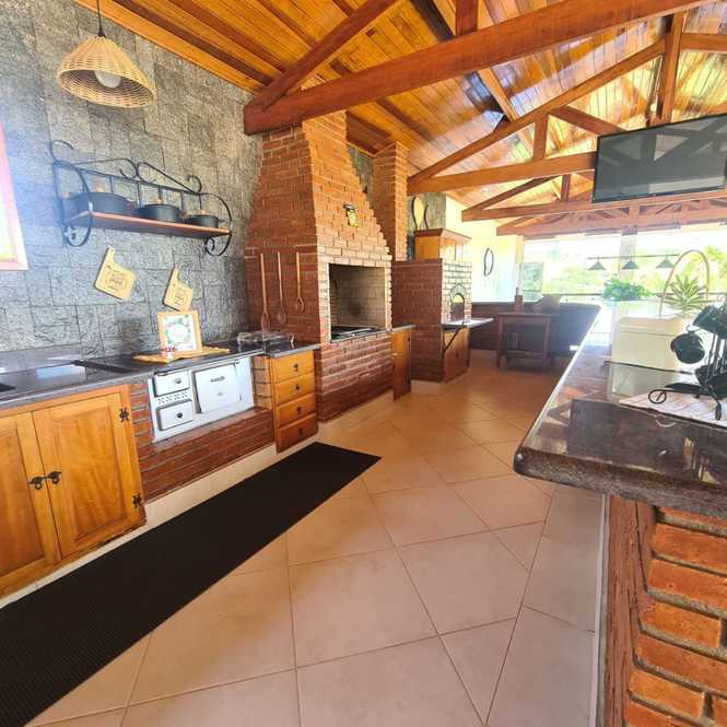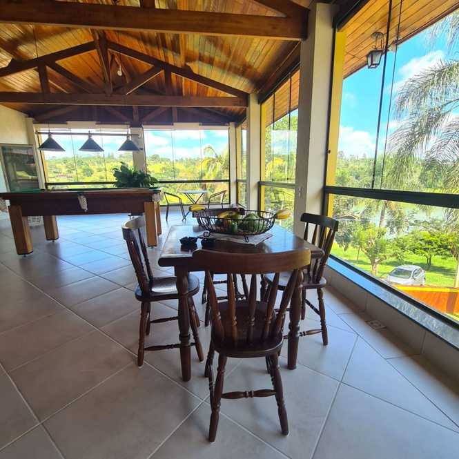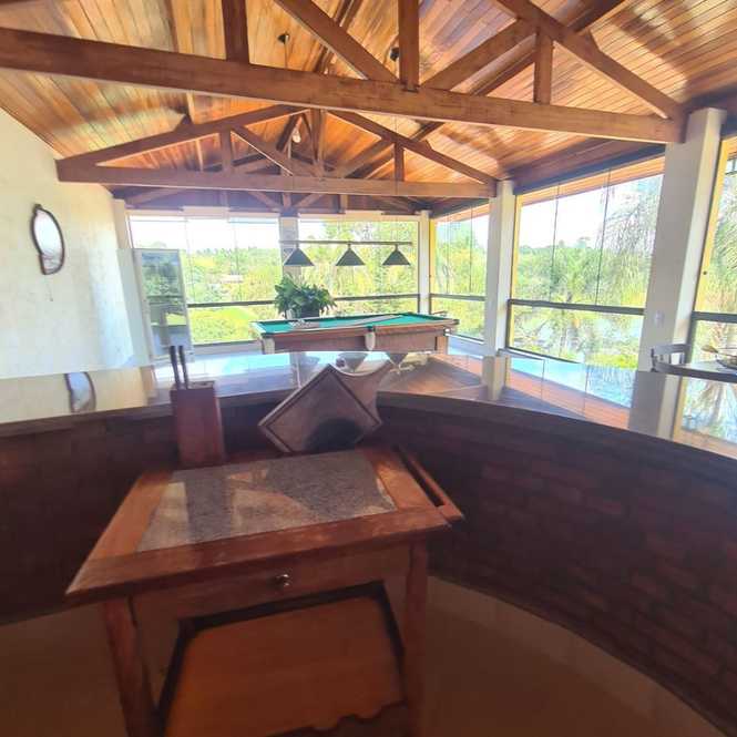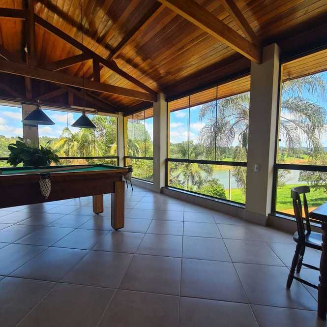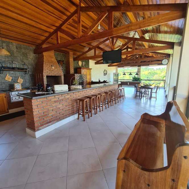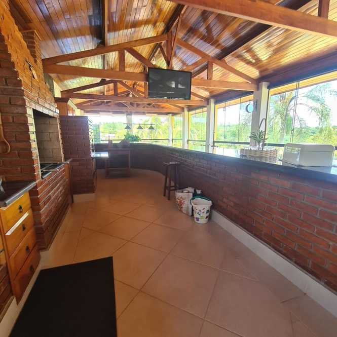 Ampla área gourmet completa com churrasqueira, forno de pizza, banheiros feminino e masculino, sala de estar com tv e uma vista sensacional para represa, fechada com vidros para utilizar em qualquer época do ano.