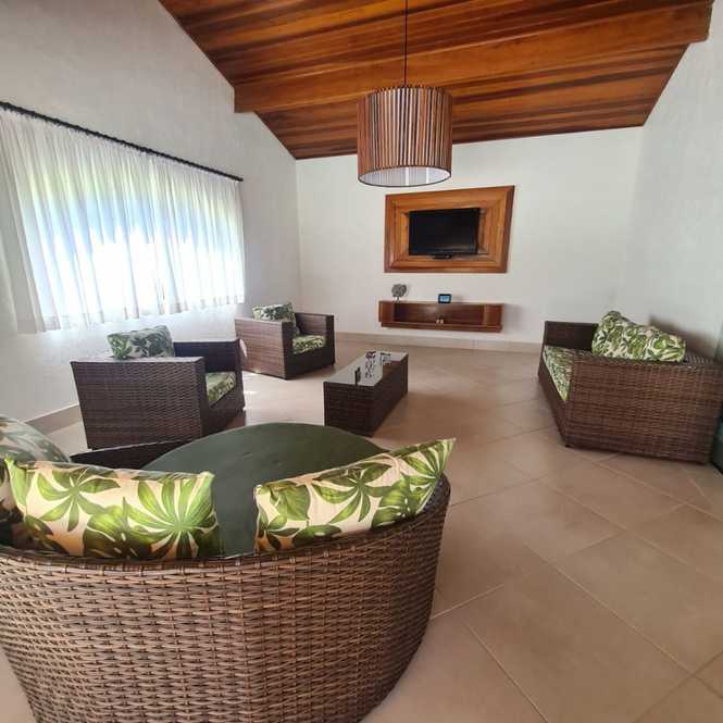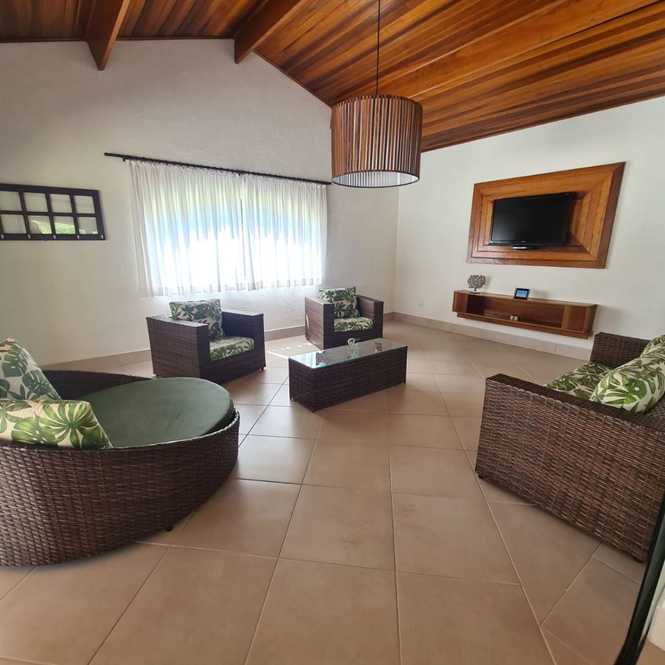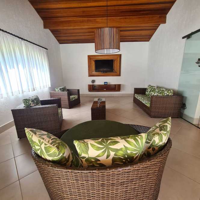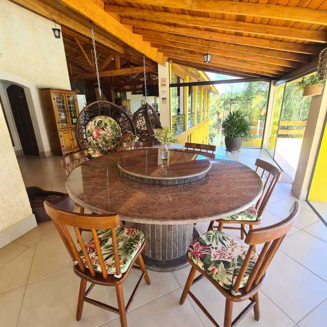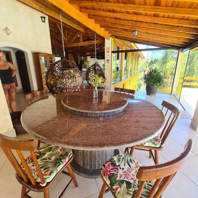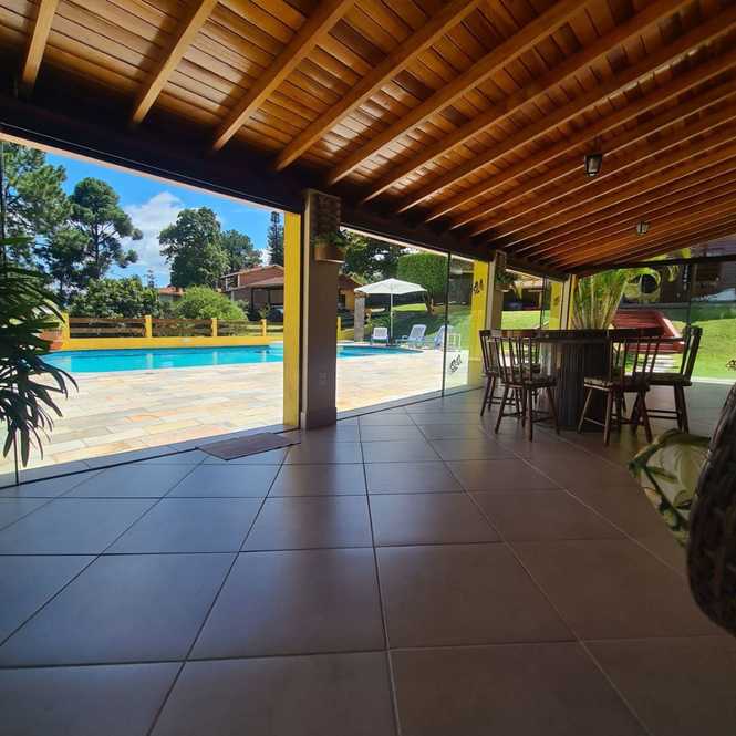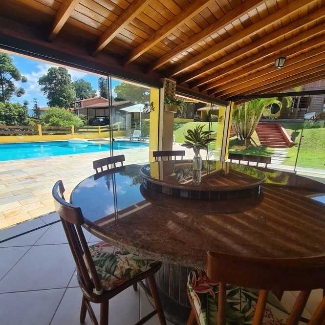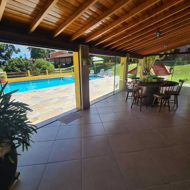 Ampla área gourmet completa com churrasqueira, forno de pizza, banheiros feminino e masculino, sala de estar com tv e uma vista sensacional para represa, fechada com vidros para utilizar em qualquer época do ano.
