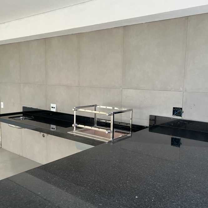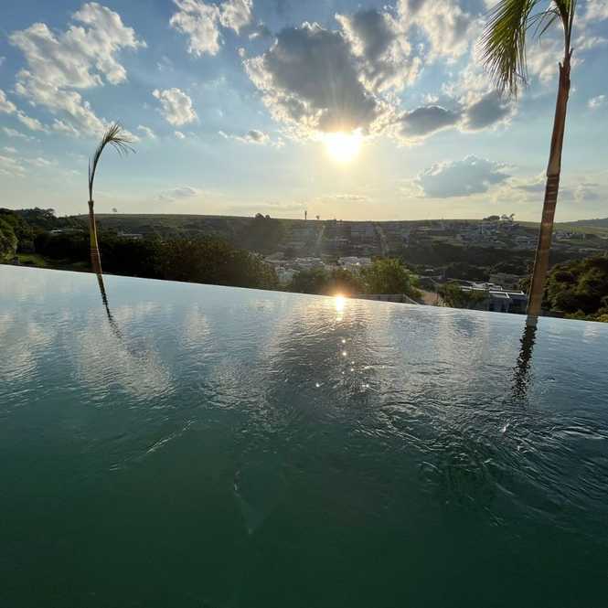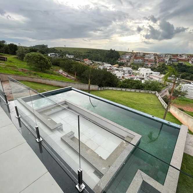 Subsolo: 2 vagas de garagem descoberta, piscina com borda infinita e raia de 12,5m, Deck molhado, hidromassagem, churrasqueira, salão de festa, depósito, lounge com lareira à gás, banheiro, solarium, área para campo de futebol gramado ou pomar,