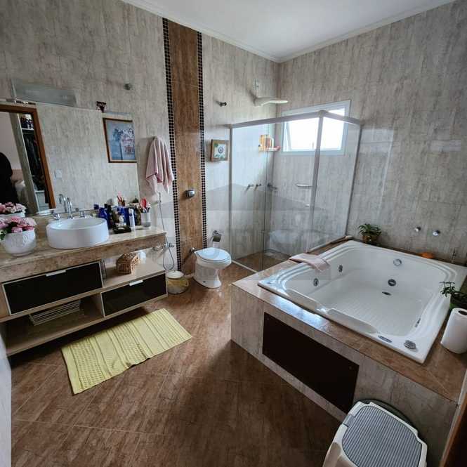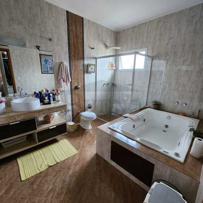 No andar térreo uma casa de 3 dormitorios sendo uma suíte Master com closet e hidro, sala ampla com um belíssimo jardim de inverno que proporciona a toda a casa muita luz e ventilação, banheiro amplo, cozinha com armários e uma lavanderia fechada e espaçosa, tudo isso com uma bela vista livre e permanente. Já no pavimento inferior, conta com um belo espaço para confraternização, aquele momento da família, com churrasqueira, banheiro e uma edícula, tudo isso ao lado de um belíssimo jardim e com entrada separada da casa. Temos garagem para 2 carros cobertos e 2 descobertos