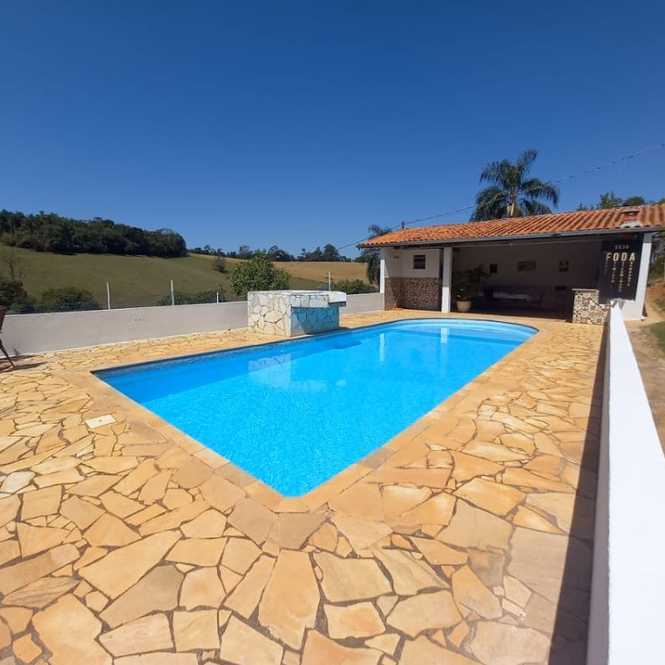 A chácara possui casa com 2 dormitórios, sala ampla, cozinha planejada, banheiro social, totalmente avarandada, área gourmet com churrasqueira e banheiro, piscina e campo de futebol.