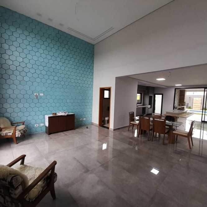 A casa possui 4 dormitórios sendo 1 com suíte, sala 2 ambientes com pé direito alto e cozinha integrada ampla, 2 banheiros um no corredor entre os dormitórios e outro próximo a piscina, área de serviço coberta, espaço gourmet com churrasqueira, depósito, quintal gramado amplo, piscina, 2 vagas cobertas e mais 2 descoberta.