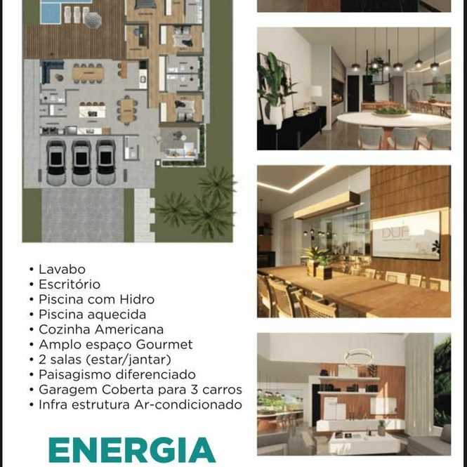 A casa totalmente térrea possuí 3 suítes sendo 1 master, sala ampla 2 ambientes estar e jantar, cozinha americana, lavabo, escritório, piscina aquecida e com hidro, espaço gourmet amplo, paisagismo diferenciado, infra estrutura para ar-condicionado, garagem coberta para 3 automóveis.