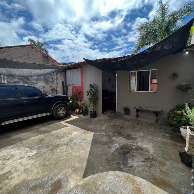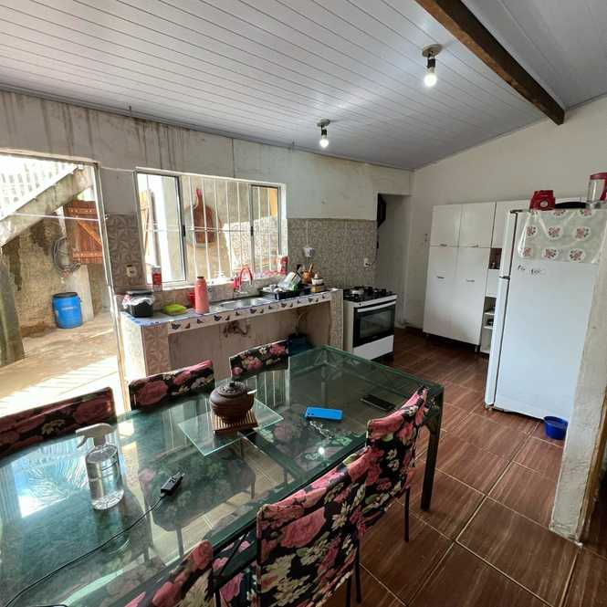 O imóvel conta com 2 dormitórios, sala, cozinha, banheiro social, área de serviço, quintal e garagem ampla.