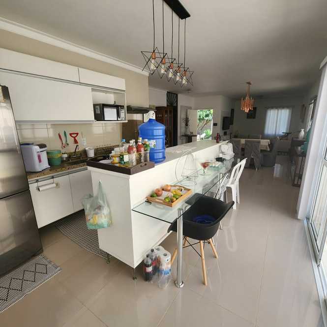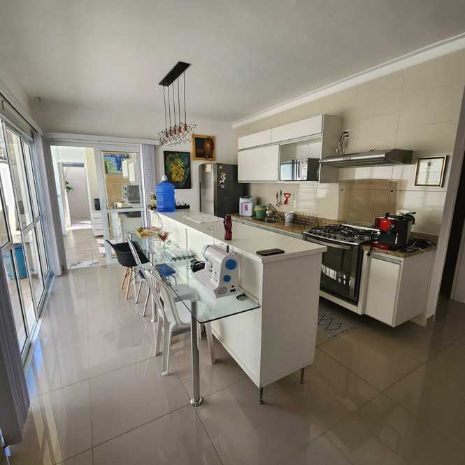 Casa térrea de 3 dormitórios (sendo 1 suíte com hidro), sala ampla 2 ambientes, cozinha com armários planejada, aréa gourmet e de serviço fechada e coberta, garagem para 4 carros sendo 2 vagas cobertas.