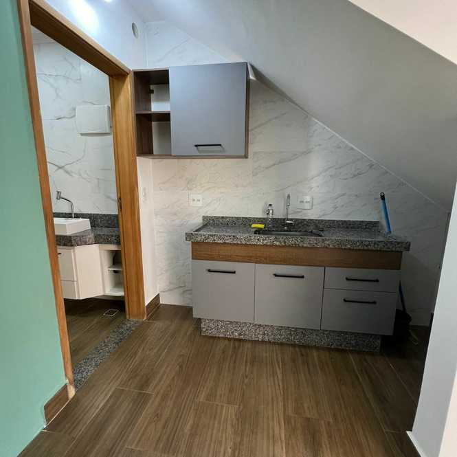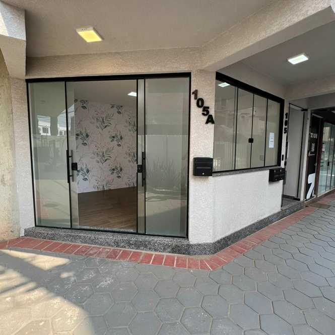 A sala possui 2 ambientes divididos onde pode ser feito recepção e sala de atendimento, tendo também uma cozinha e banheiro social.