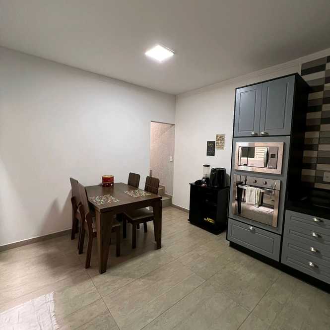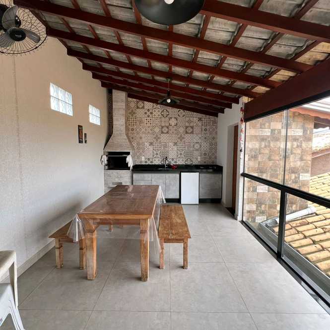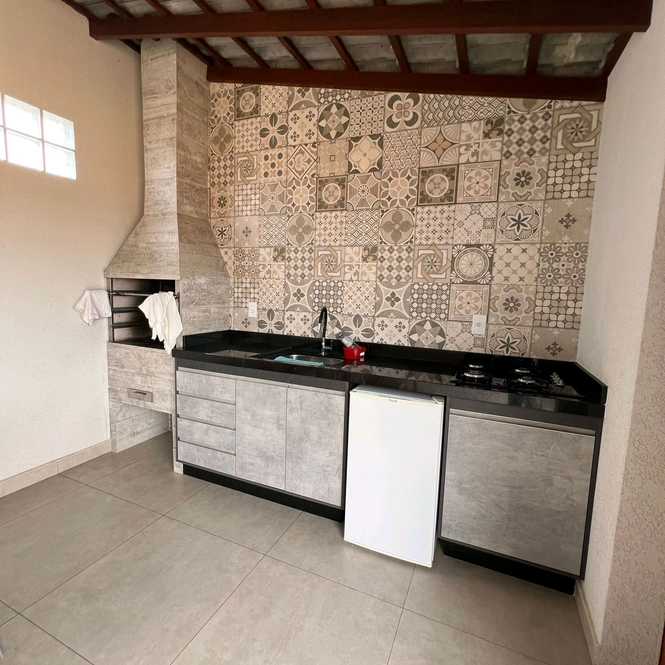 Casa com fino acabamento tendo 2 dormitórios, sala com sanca e iluminação de led, cozinha planejada com forno e cooktop, área de serviço coberta, área gourmet com churrasqueira e banheiro, garagem ampla coberta para 03 automóveis.