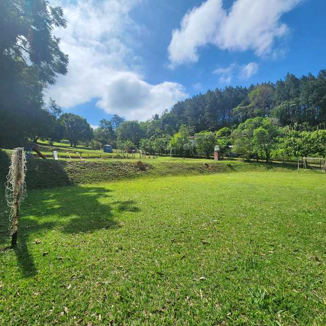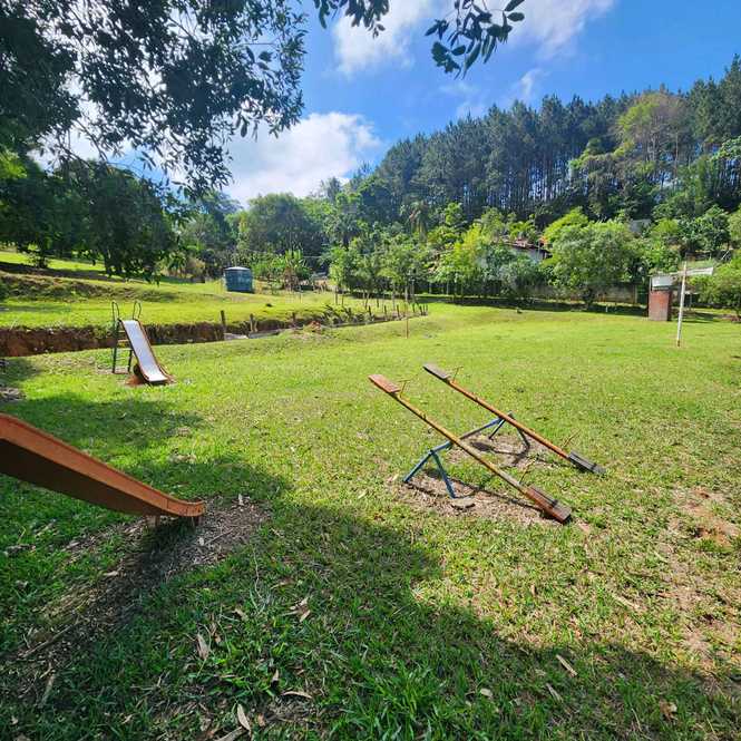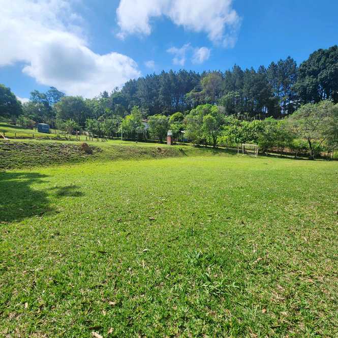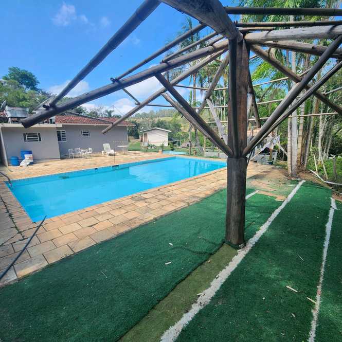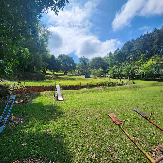 Desfrute de momentos únicos com sua família e amigos em uma chácara de 12.800m², com escritura, que acomoda até 35 pessoas. A propriedade conta com 4 casas, barracão com campo society, cozinha equipada e churrasqueira, além de duas opções de lazer com lagos, piscina, vestiários, sauna, campo de futebol, quadra de vôlei e playground. Toda a área é gramada e possui energia trifásica, internet, monitoramento, telefone fixo e um poço artesiano que abastece toda a chácara.
