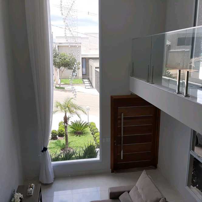 - Sala de estar com pé-direito de 6 metros, proporcionando amplitude e iluminação natural