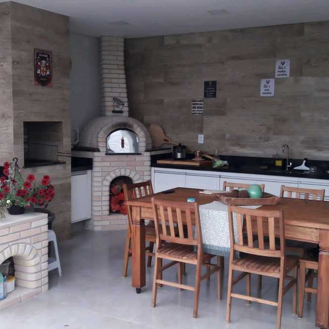 - Cozinha funcional integrada à área gourmet completa, equipada com forno de pizza, churrasqueira e fogão a lenha