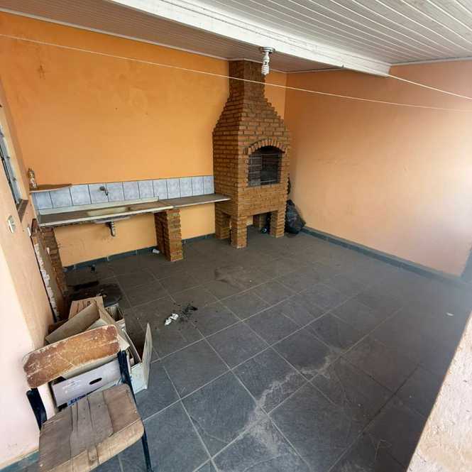 A casa possui 2 dormitórios, sala, cozinha, banheiro social, área de serviço, área de churrasqueira com banheiro, quintal e garagem coberta.