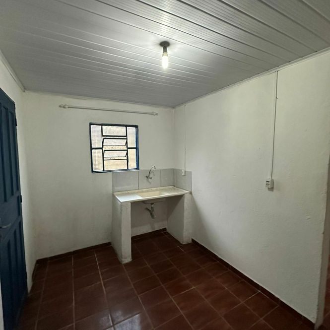 Casa para locação tendo 1 dormitório, sala, cozinha, banheiro e área de serviço.