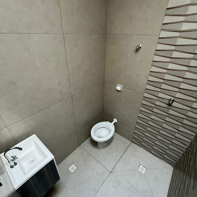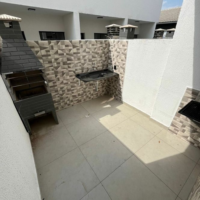 Casa para locação tendo 2 dormitórios, sala, cozinha, banheiro, garagem e área de serviço com churrasqueira.