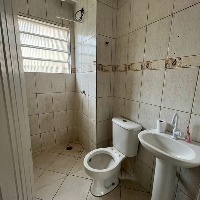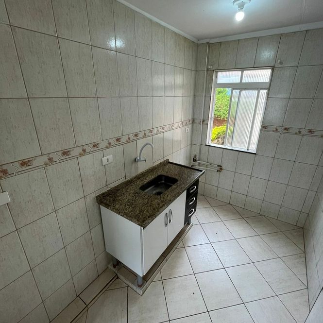 Apartamento para locação tendo 2 dormitórios, sala, cozinha, banheiro e garagem.