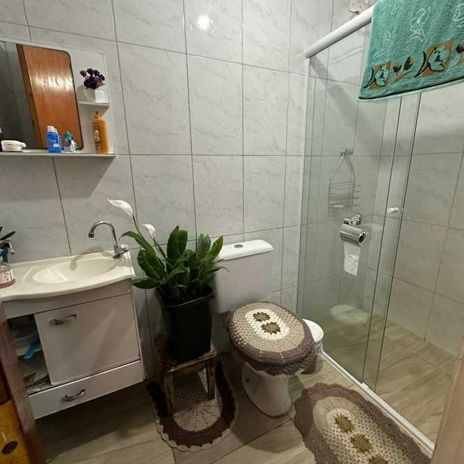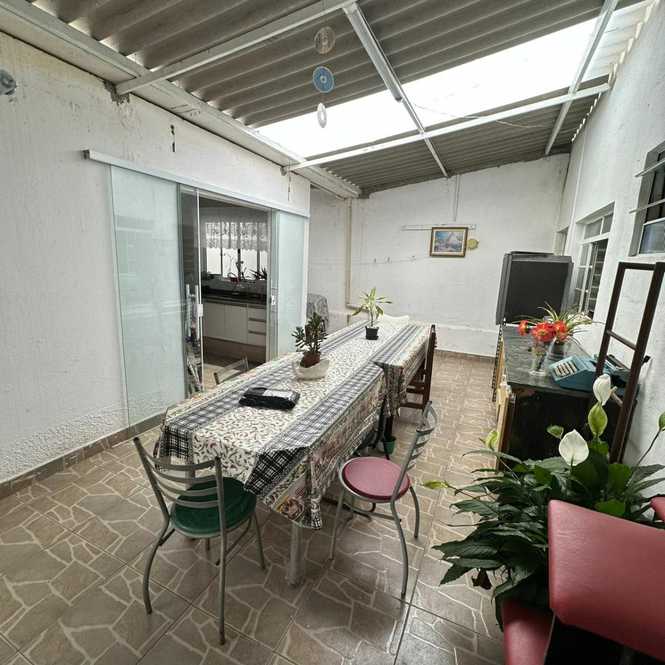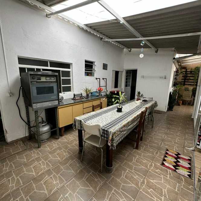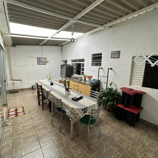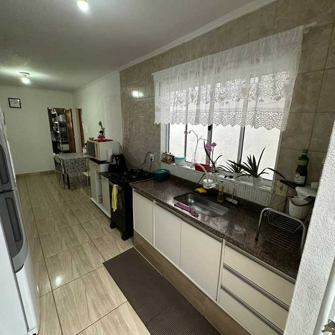 A casa possui 2 dormitórios, sala, cozinha ampla, banheiro social, área de serviço coberta, espaço amplo coberto integrado com a cozinha, edícula com 1 dormitório, sala e banheiro, garagem para 3 automóveis e ponto comercial na frente com banheiro.