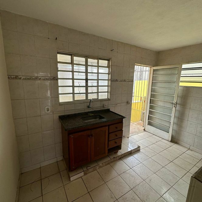 Casa para locação tendo 2 dormitórios, sala, cozinha, banheiro e garagem.