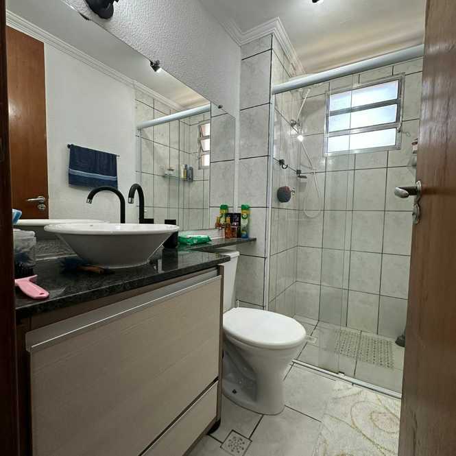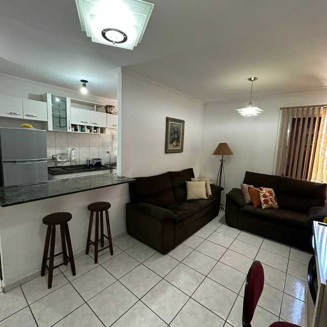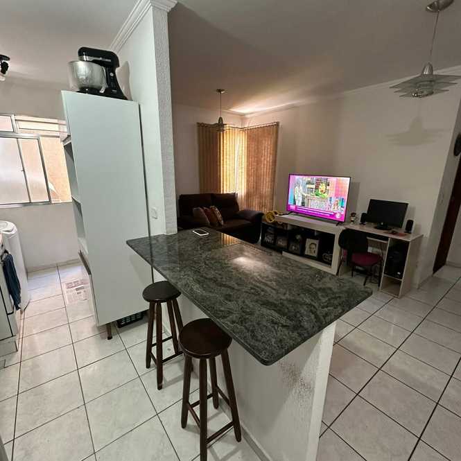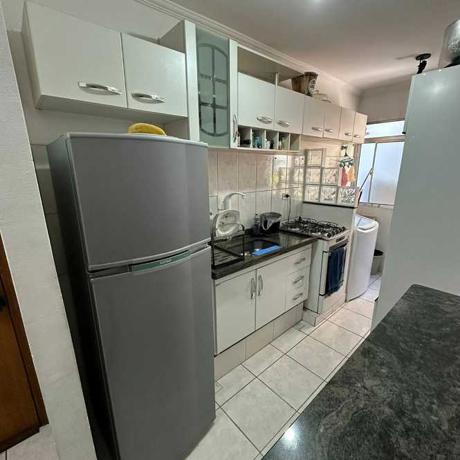 O apartamento possui 2 dormitórios, sala, cozinha, banheiro social, área de serviço e vaga coberta para 01 automóvel.