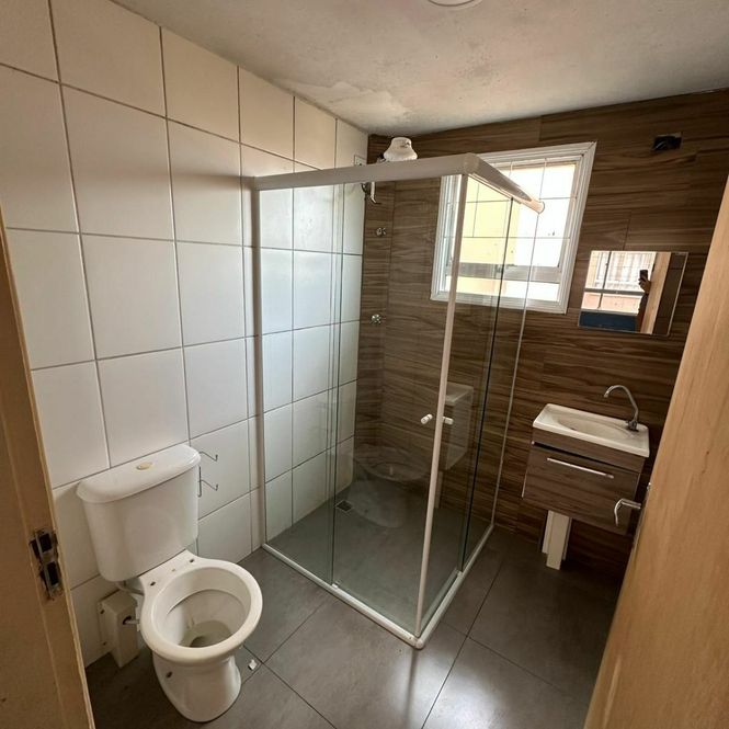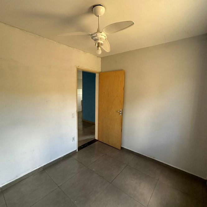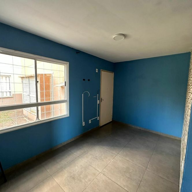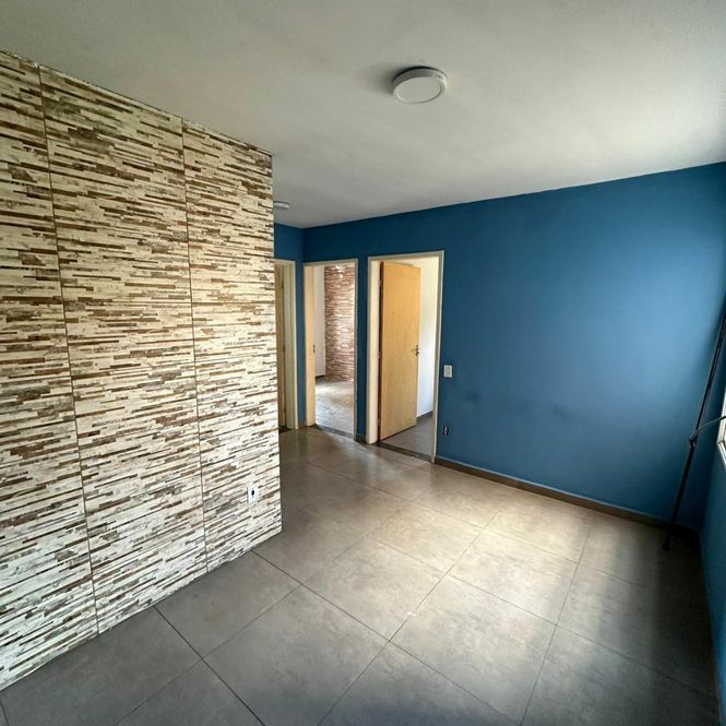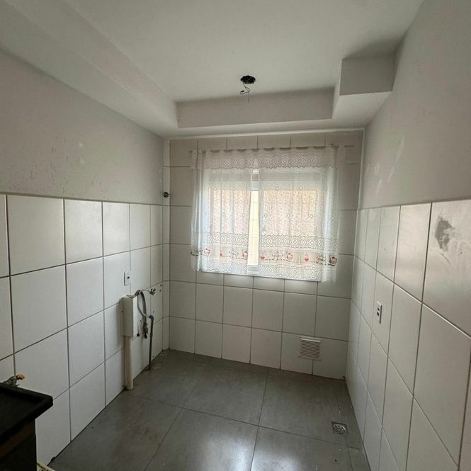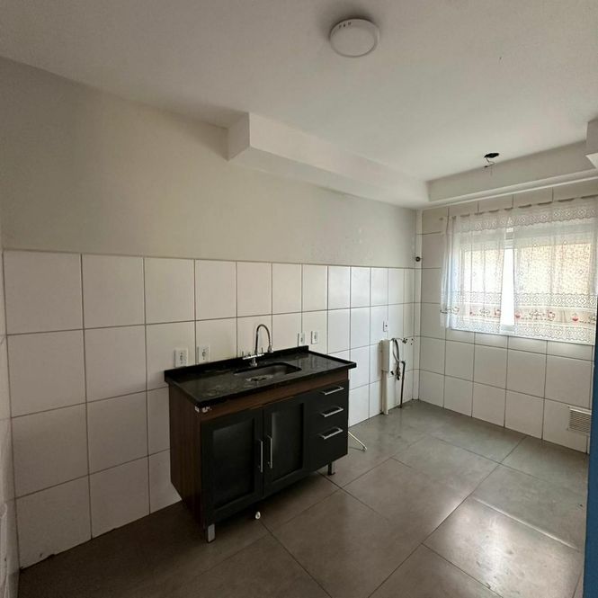 Apartamento para locação tendo 2 dormitórios, sala, cozinha, banheiro e garagem.