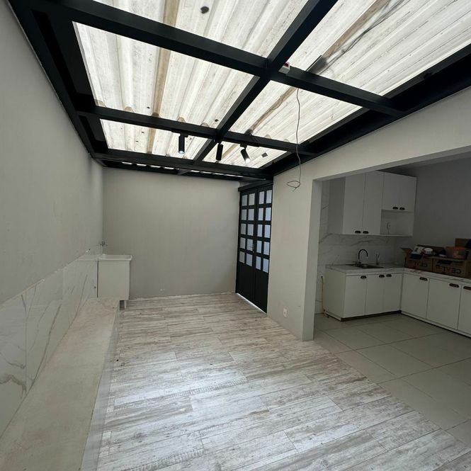 Casa para locação tendo 2 dormitórios sendo 1 suíte, sala, cozinha, banheiro, área de serviço e garagem para uns 3 carros.