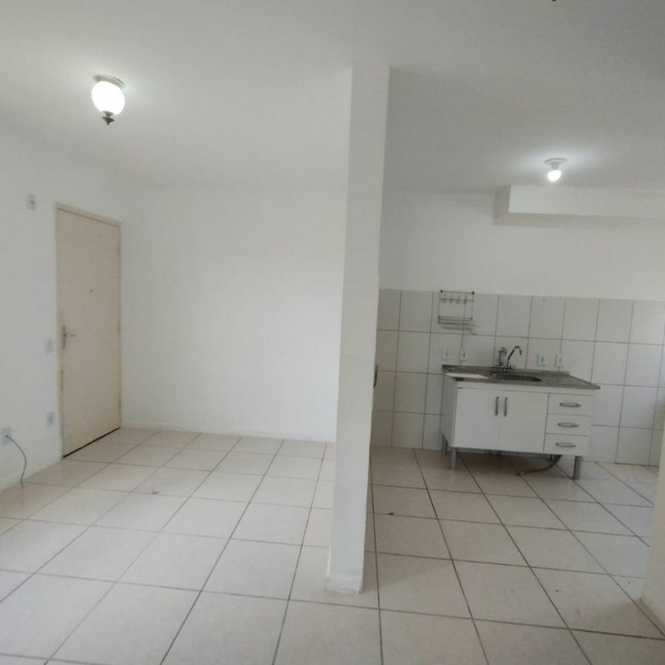 Apartamento para locação tendo 2 dormitórios, sala, cozinha, banheiro e garagem.