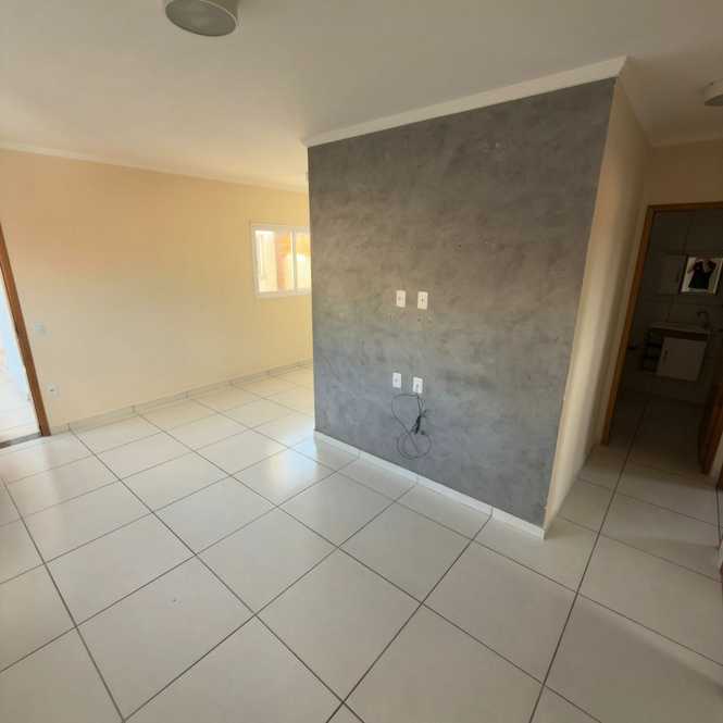 Apartamento para locação tendo 2 dormitórios, sala, cozinha, banheiro e garagem.