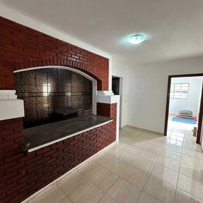Casa para locação tendo 3 dormitórios, sala, cozinha, banheiro social, área de serviço, quintal, área de churrasqueira com banheiro e garagem para uns 6 autos.