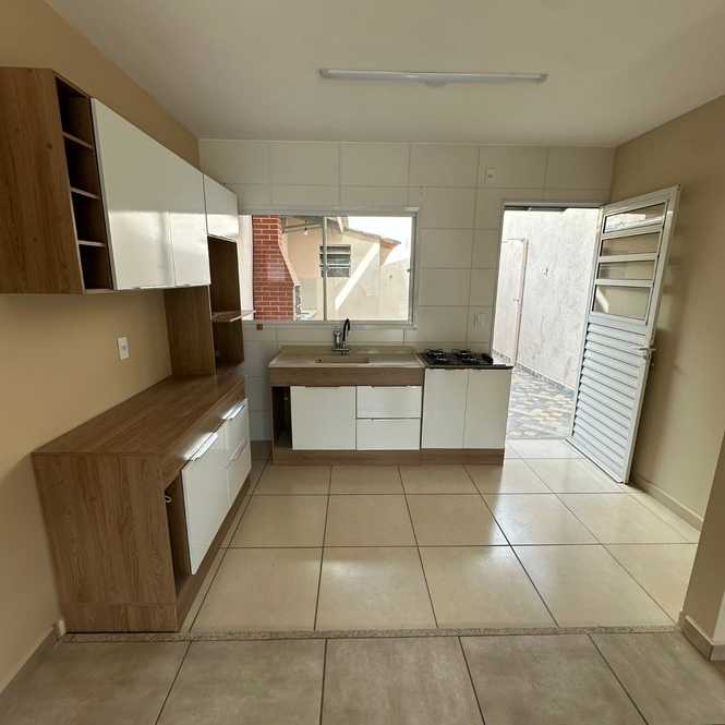 Casa para locação tendo 2 dormitórios, sala, cozinha, banheiro e garagem.