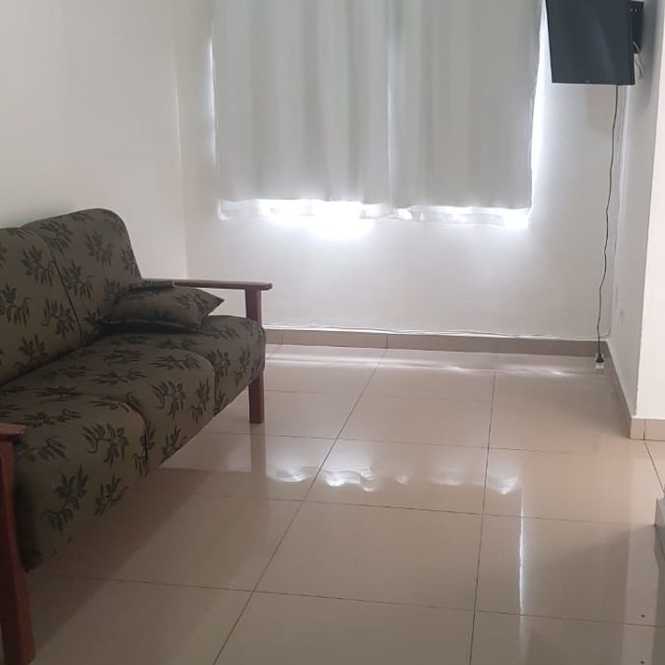 Apartamento para locação mensal ou locação por temporada, tendo 1 dormitório, sala, cozinha, banheiro, área de serviço e vaga coberta para 1 automóvel.