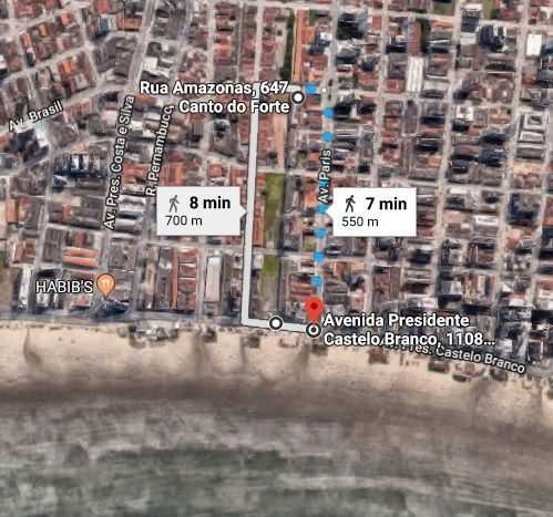 O apartamento fica cerca de 600m da praia.